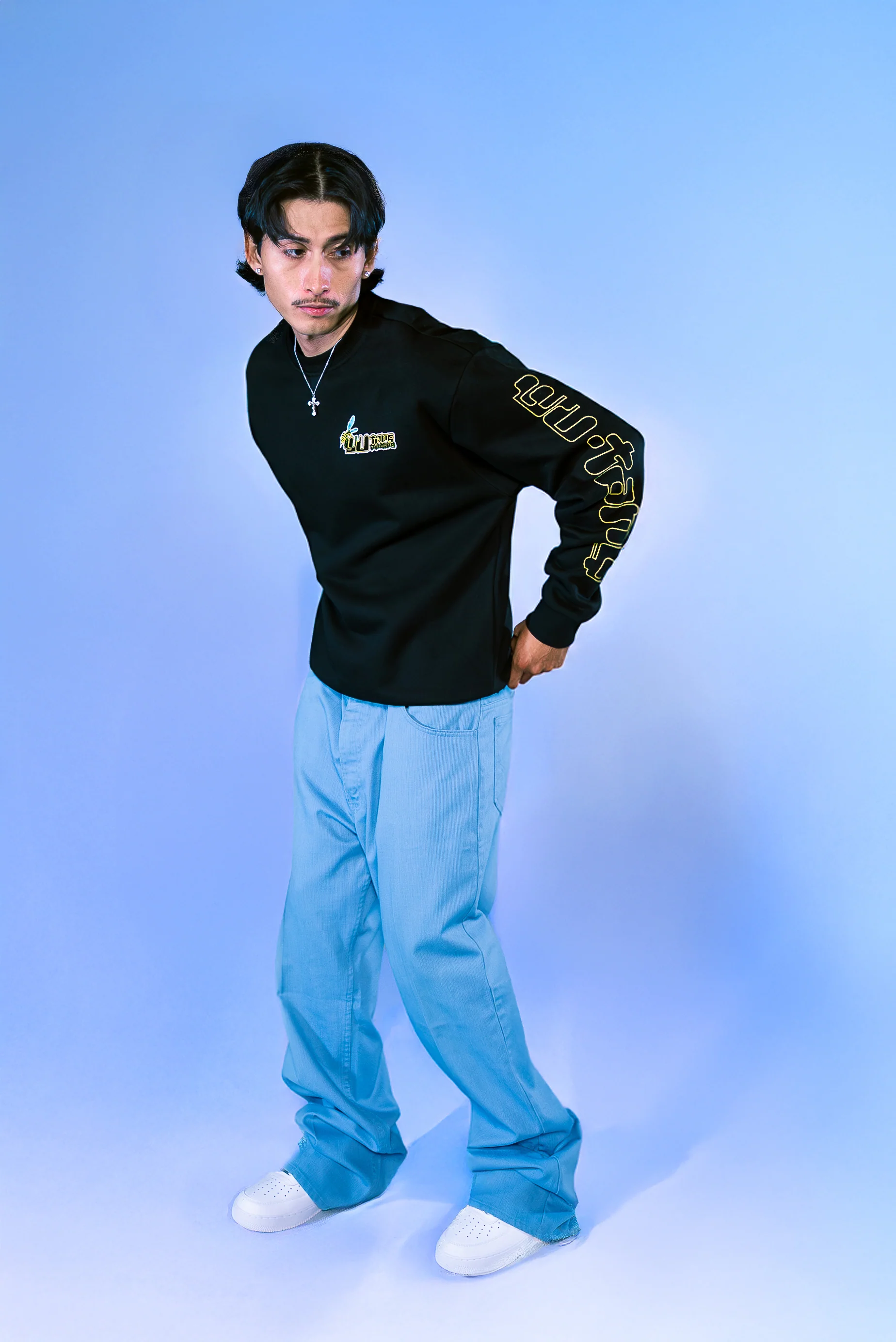 Racing-inspired graphics screen printed on crew neck.